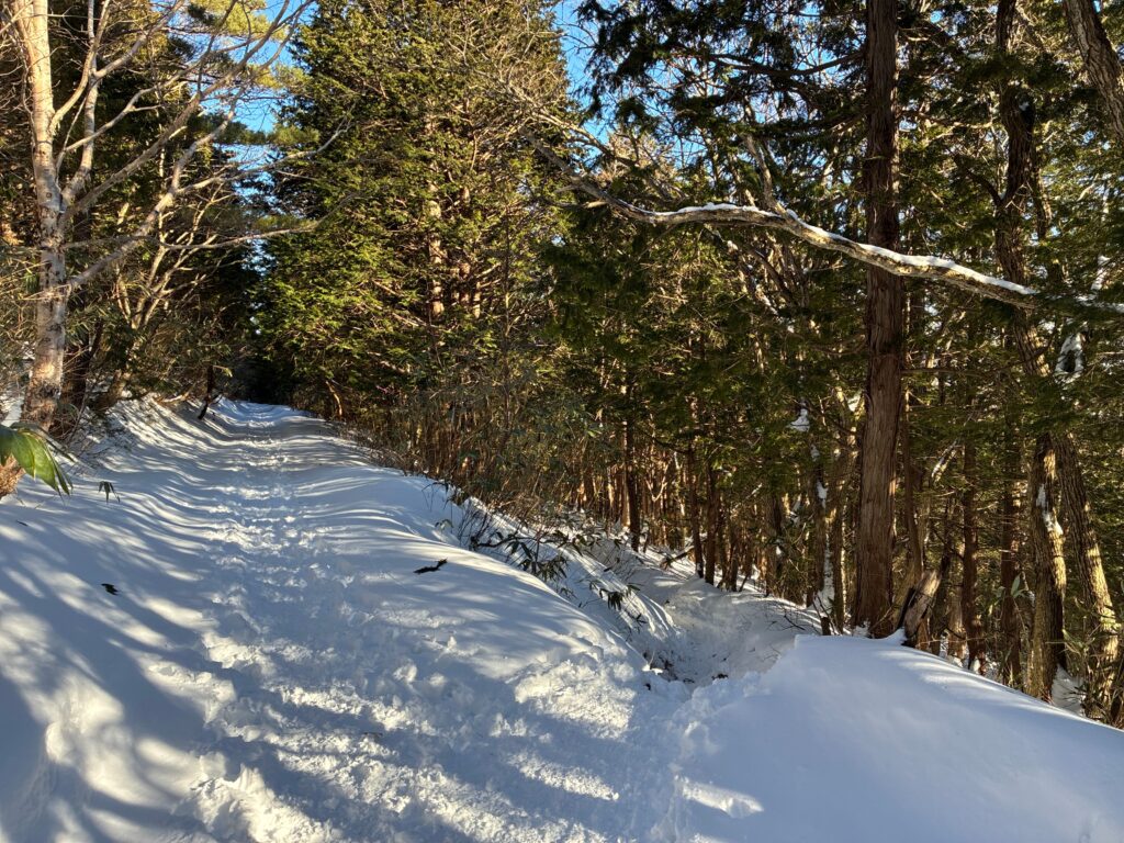道が荒れており無雪期は通りませんが、積雪期だと普通に歩けます。