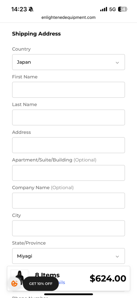 さらに、エンライトイクイップメント公式では毎年11月に20%OFFセールを行っていることも知り、今回欲しい製品をまとめて個人輸入することにしました。
