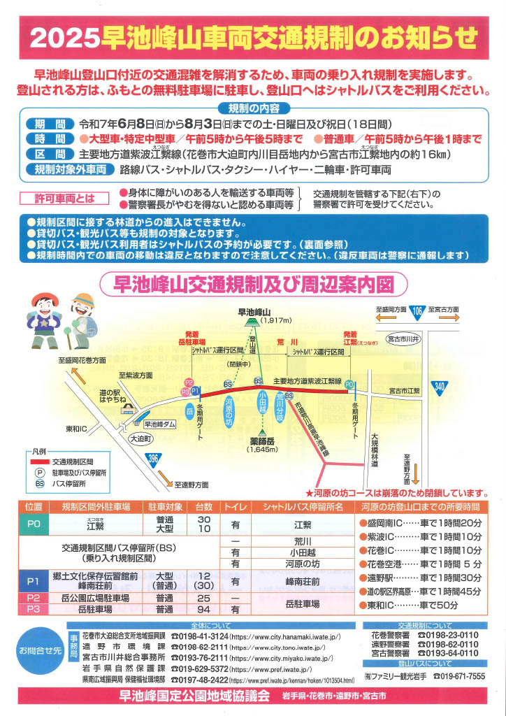 小田越登山口から登る予定ですがその付近は駐車禁止で、下の河原の坊駐車場から歩く必要がありますが、時期によっては通行規制があるため注意です。※河原の坊登山口は閉鎖中