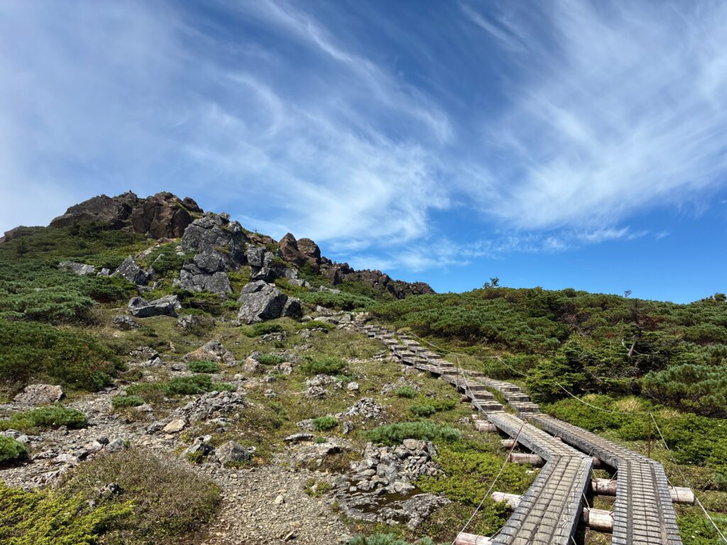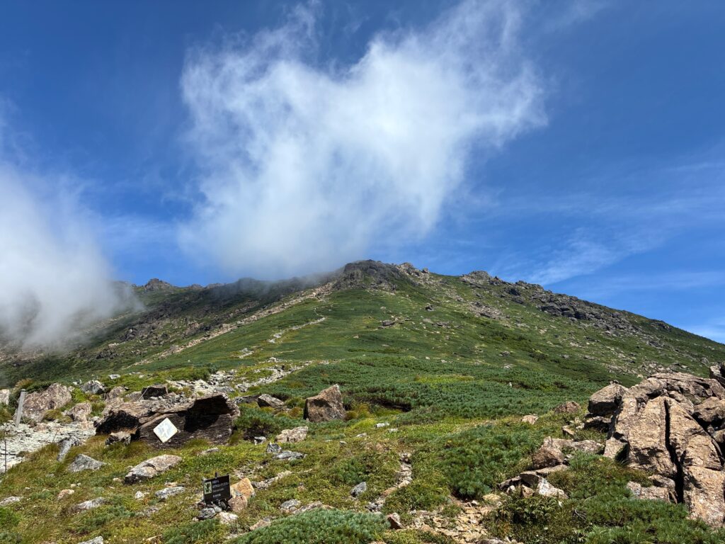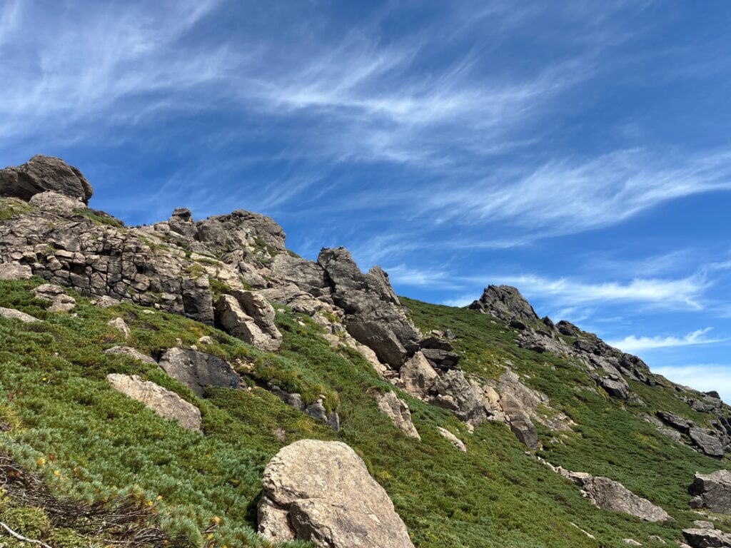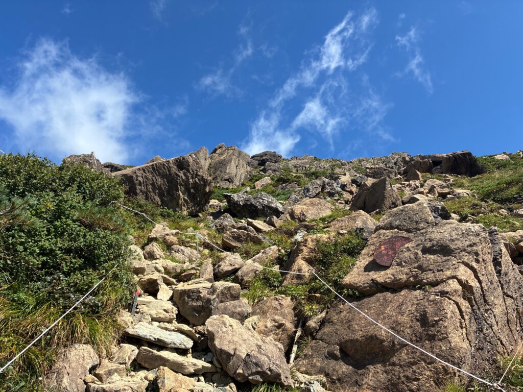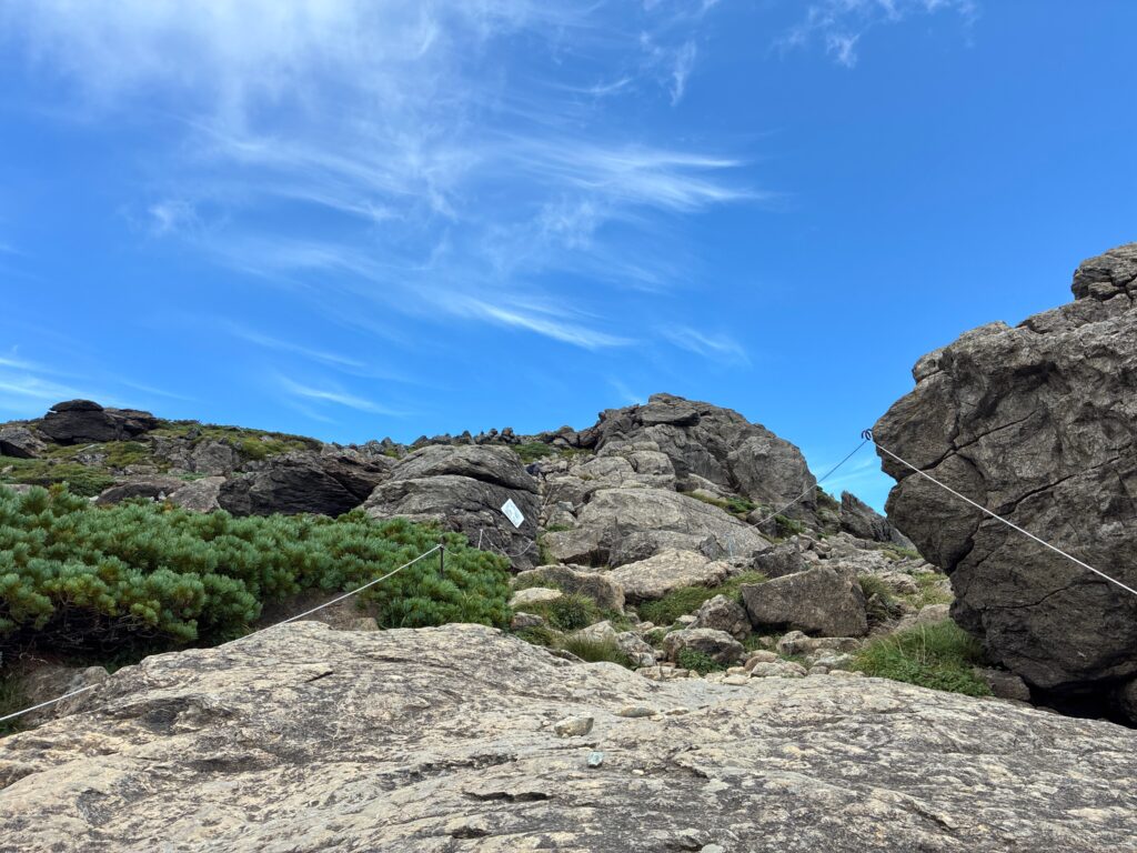 高山植物に加えて特徴的な岩も多く、登っていて飽きることはありません。