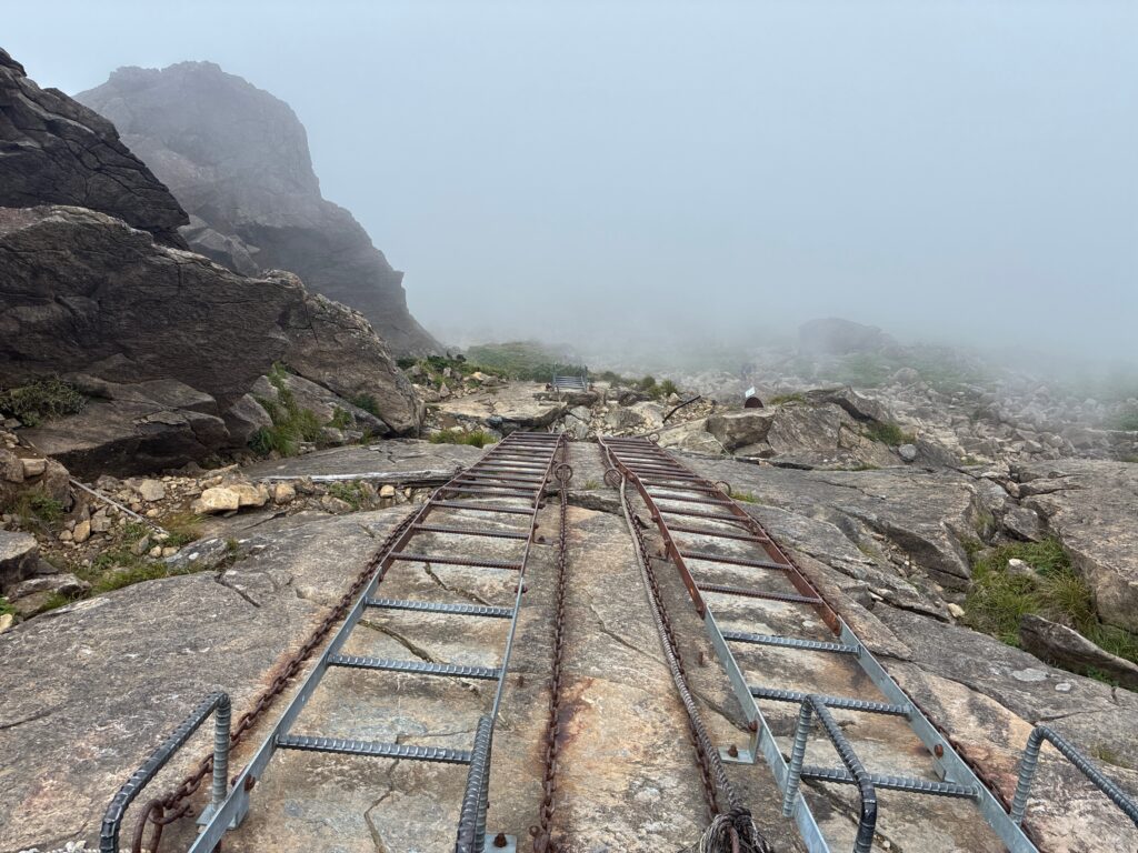 稜線近くの登りに梯子がありますが、このあたりでガスが流れてきて一時視界も悪化。