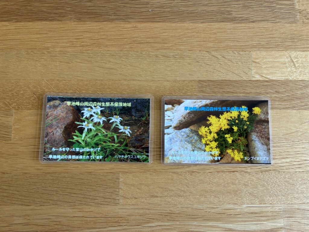 下山中には森林保護員の方に会い、高山植物のカードを貰えました。