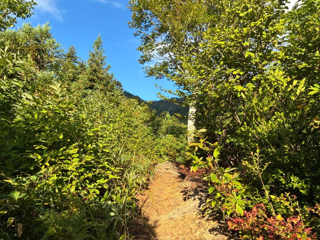 長かった…。標識は奥の草木で囲われた場所にあります。