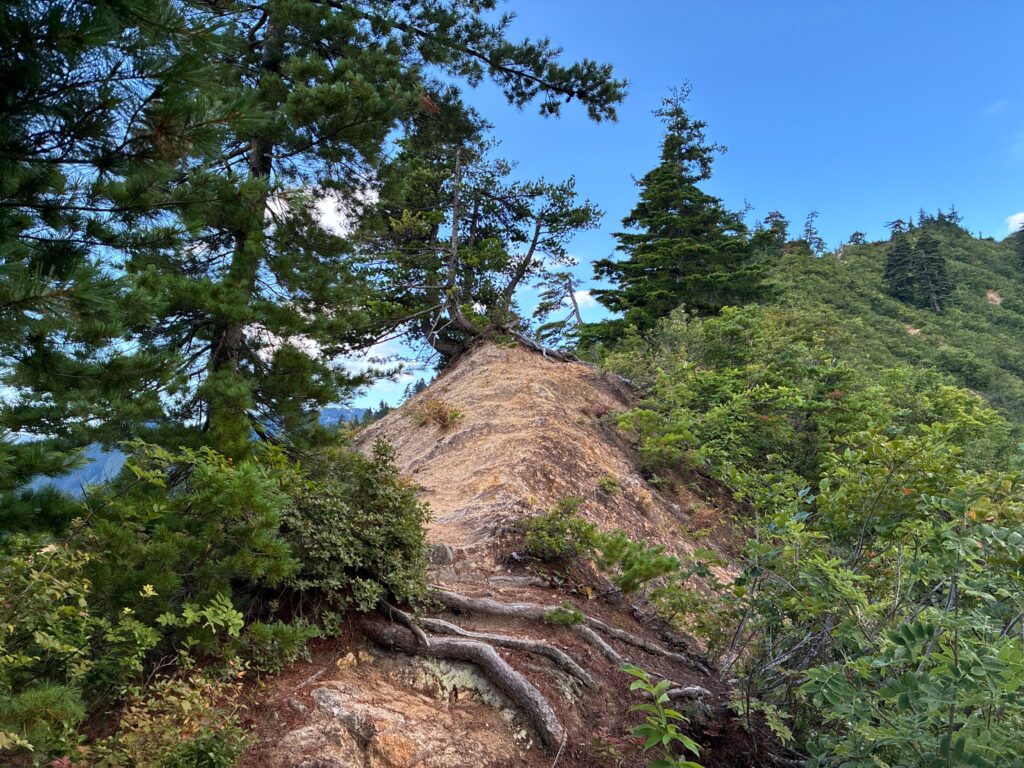 崖になっている箇所もありますが、普通に登山道を歩いていれば落ちることはありません。