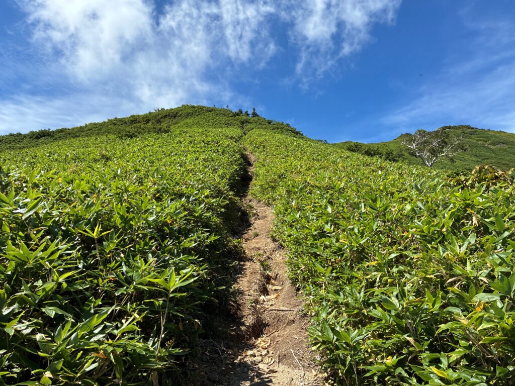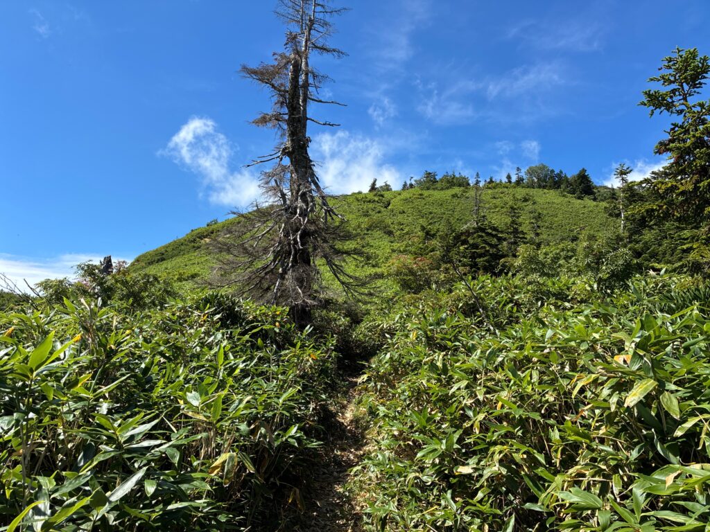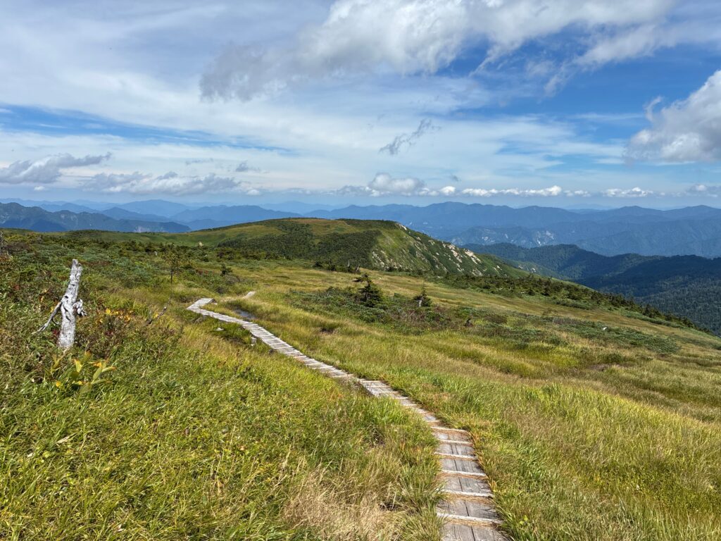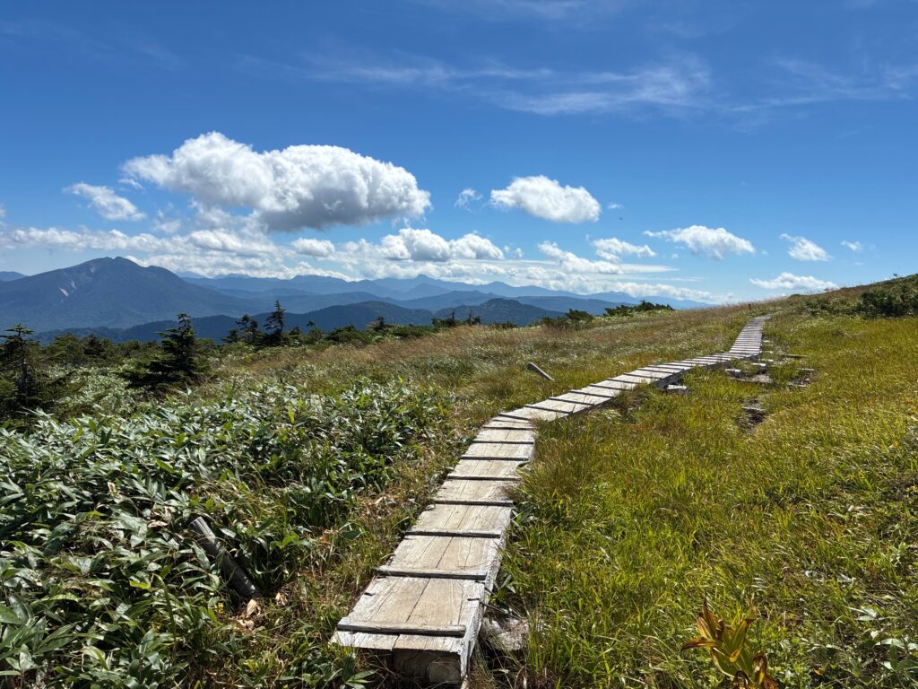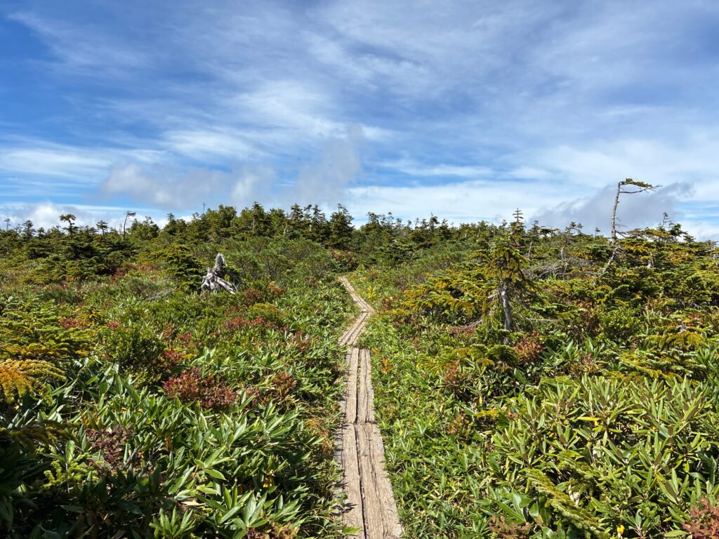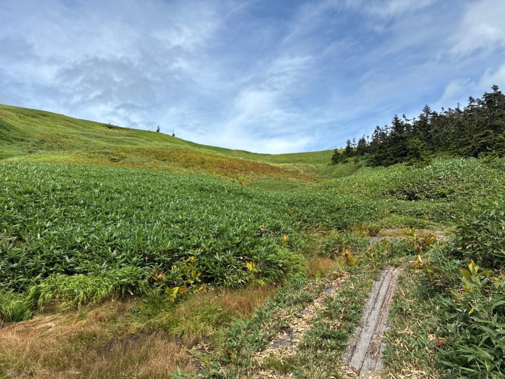 この標高で山頂付近が広大な湿原になっているのは新鮮で、空に向かって歩いている感覚!