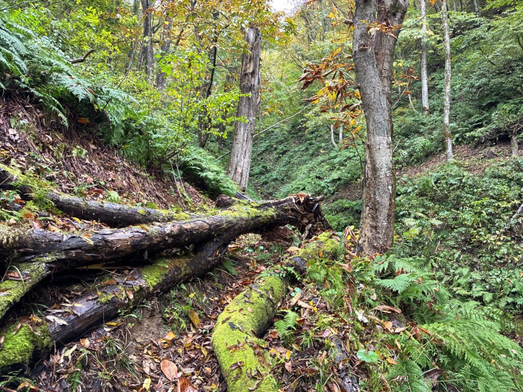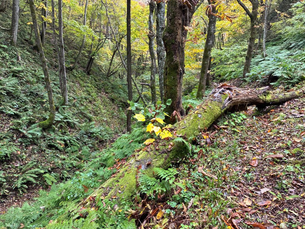 登山口から少し登ると倒木があり、乗り越えようとしたところ、滑って右下の斜面に転落…背中から3回転ぐらいしながら落ちました…。