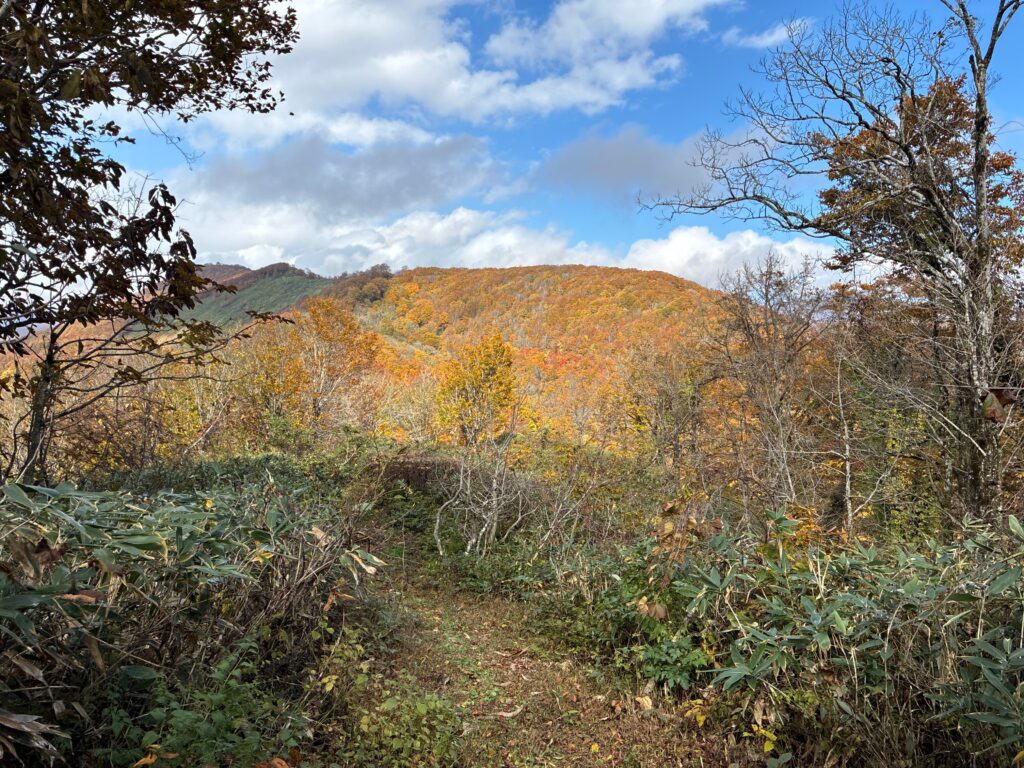 ここからは付近の山々の紅葉も見ながら歩けます。