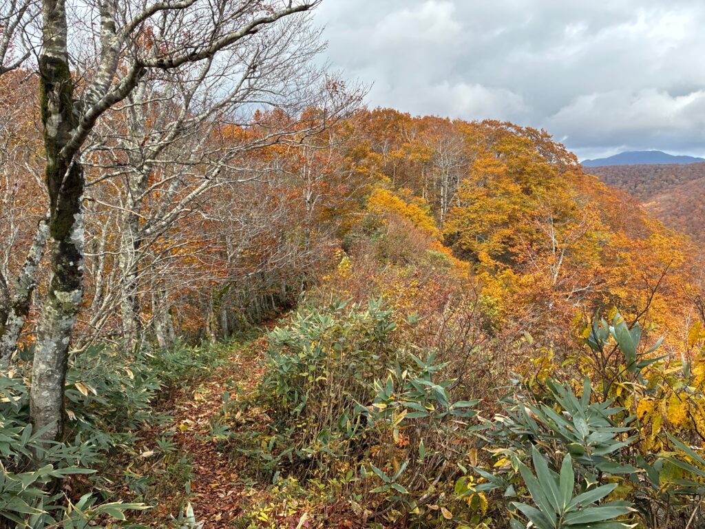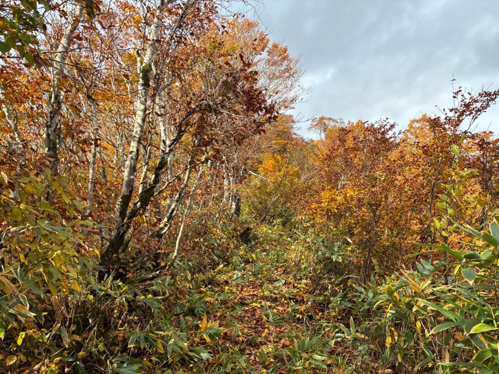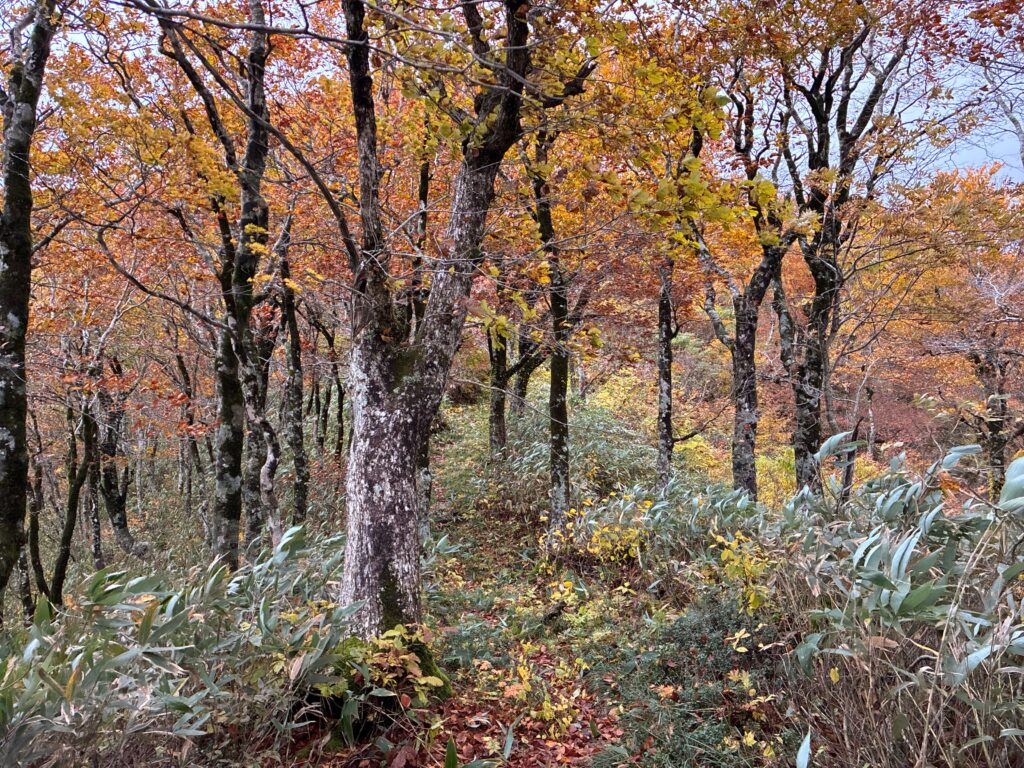 標高が上がるにつれ、紅葉した木々が増えていきます。