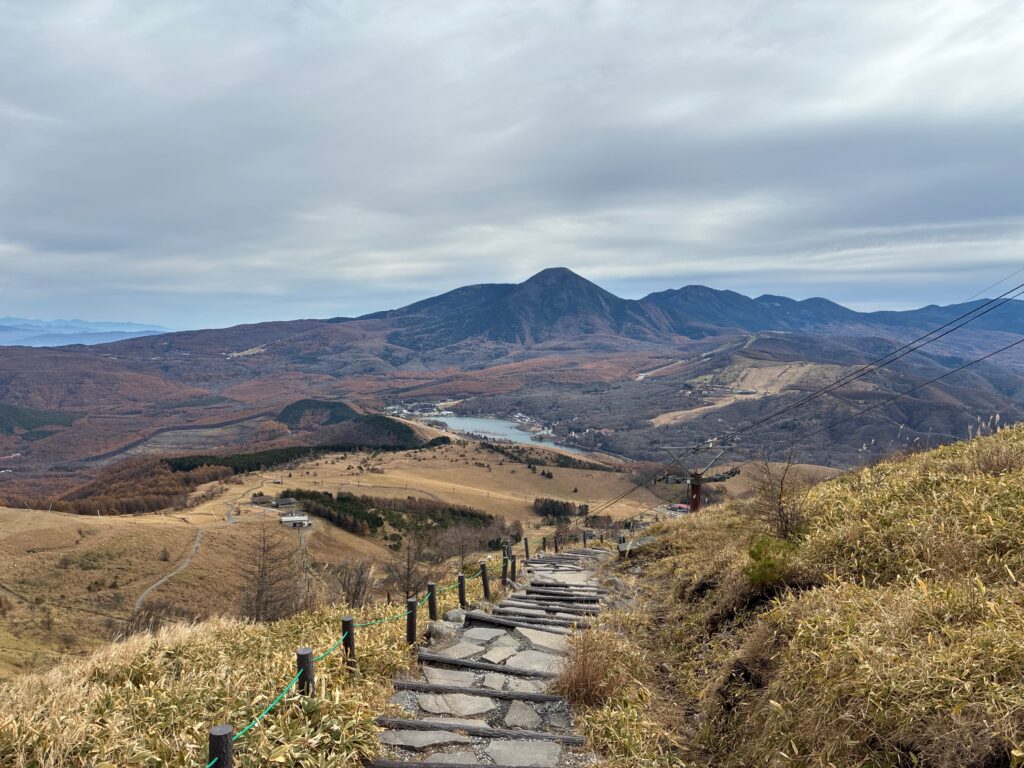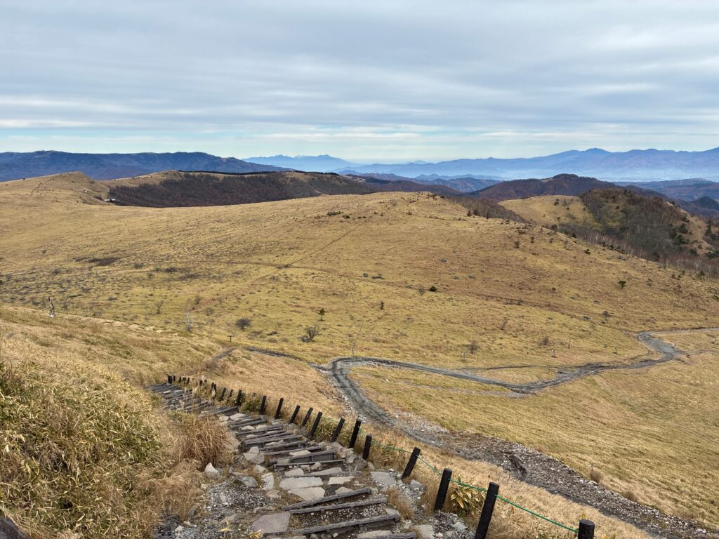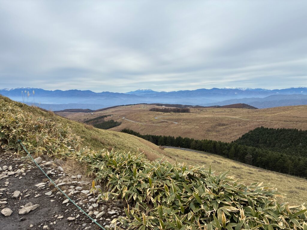 登山道の横からは高原や麓の街並みがよく見えます。