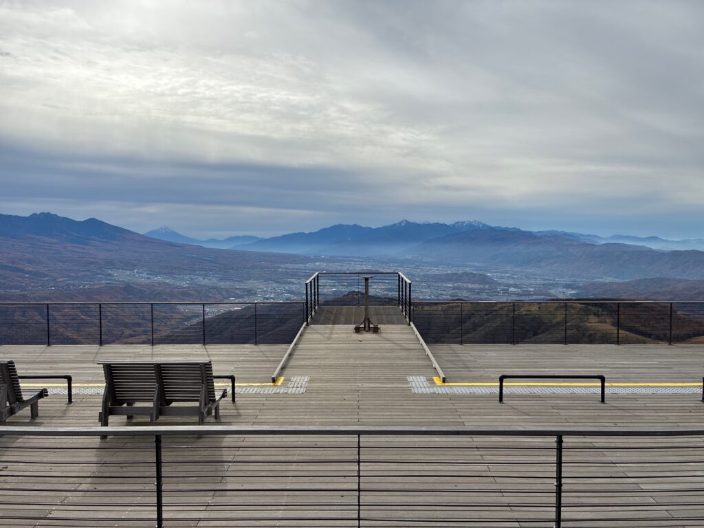湿原を抜けた後は、車山肩駐車場奥の景観スポットにも立ち寄り。こちらも地面はドロドロでした笑。