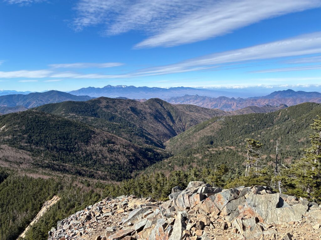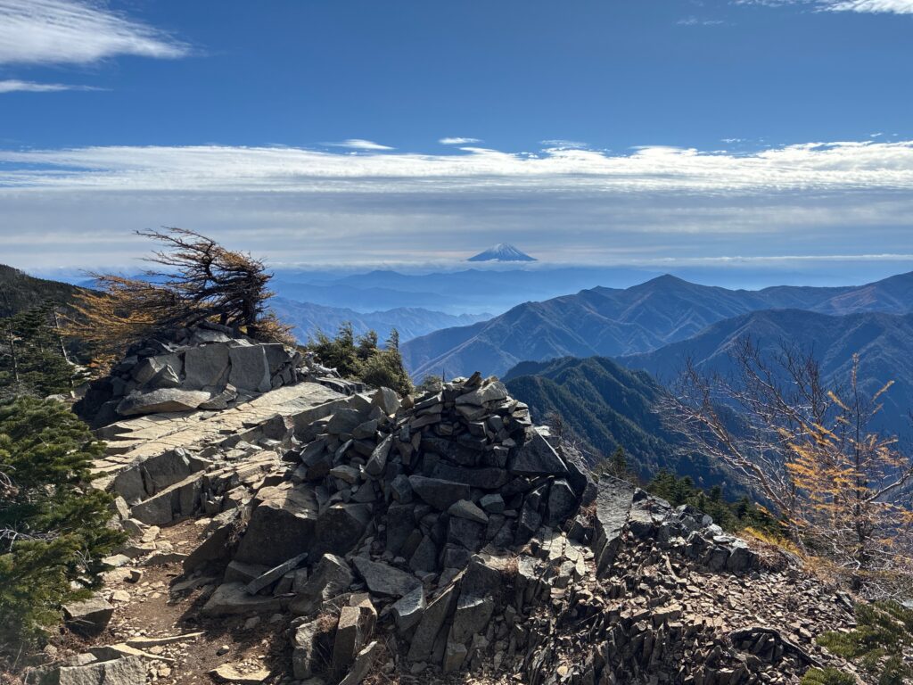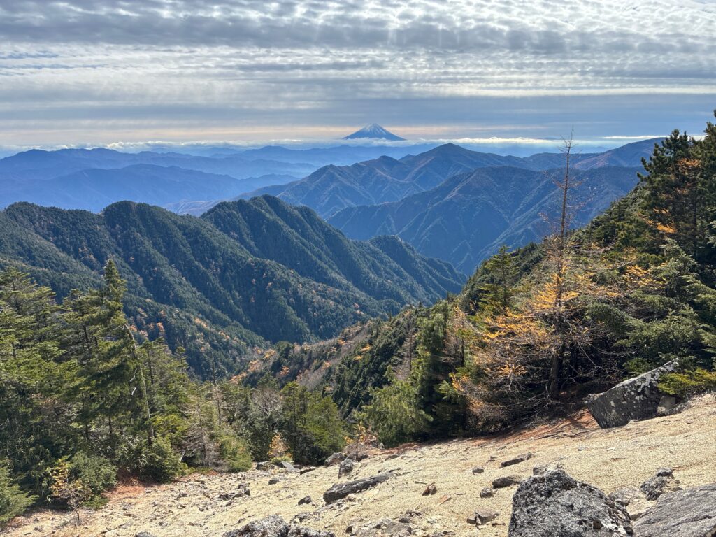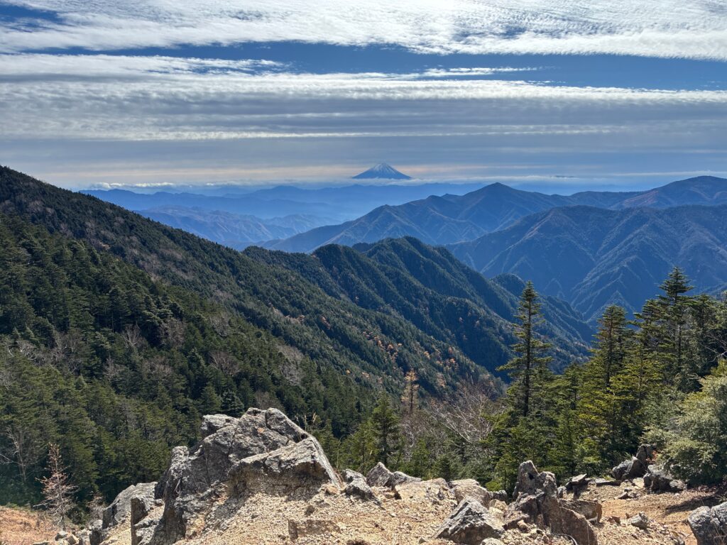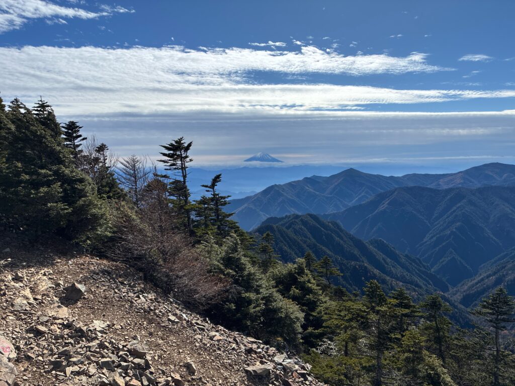 途中登山道から少し逸れると、甲武信ヶ岳の山頂や富士山が良く見える景観スポットがあります。