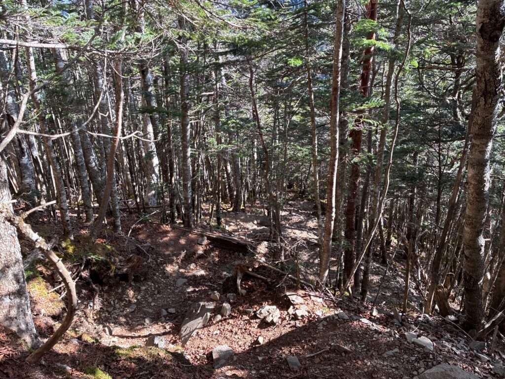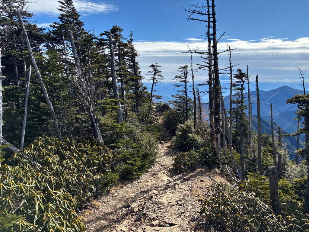その後は山頂奥の稜線を進み、甲武信小屋の方に下っていきます。