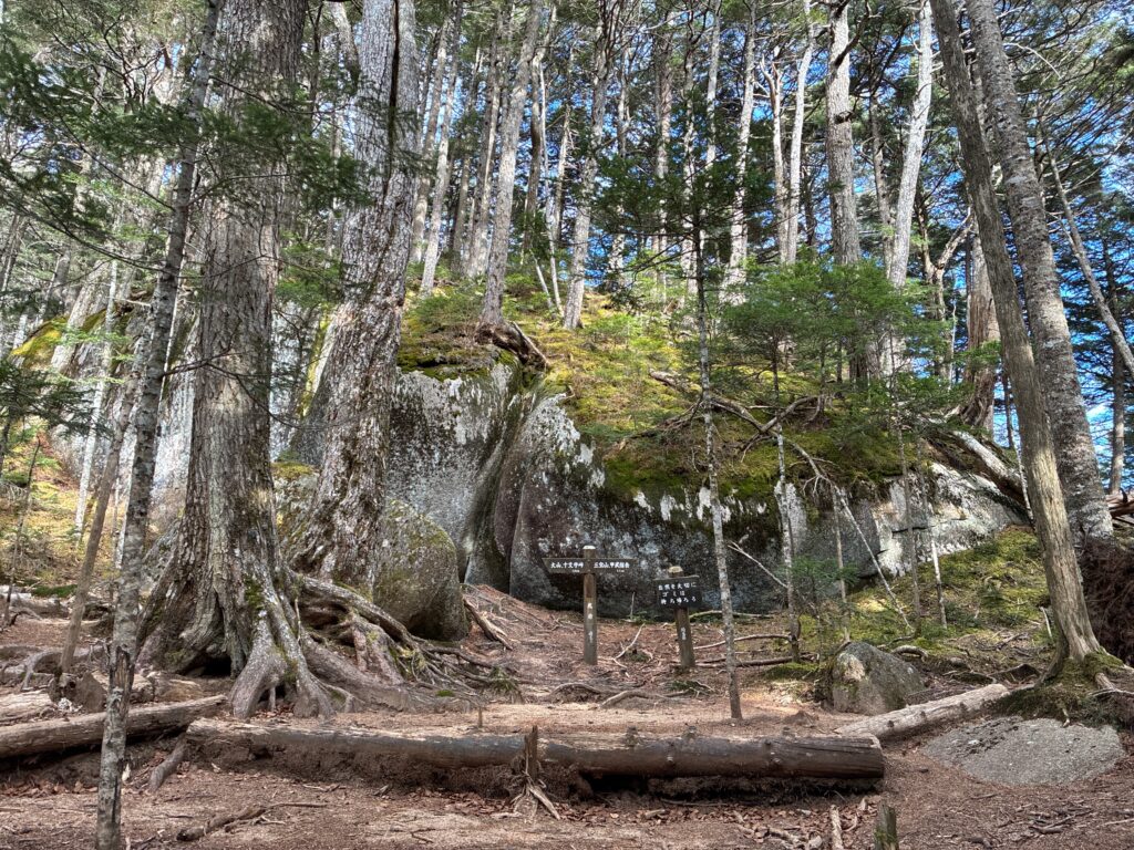 左に進めば甲武信ヶ岳の山頂ですが、せっかくなので反対側の水師の方にも立ち寄ります。