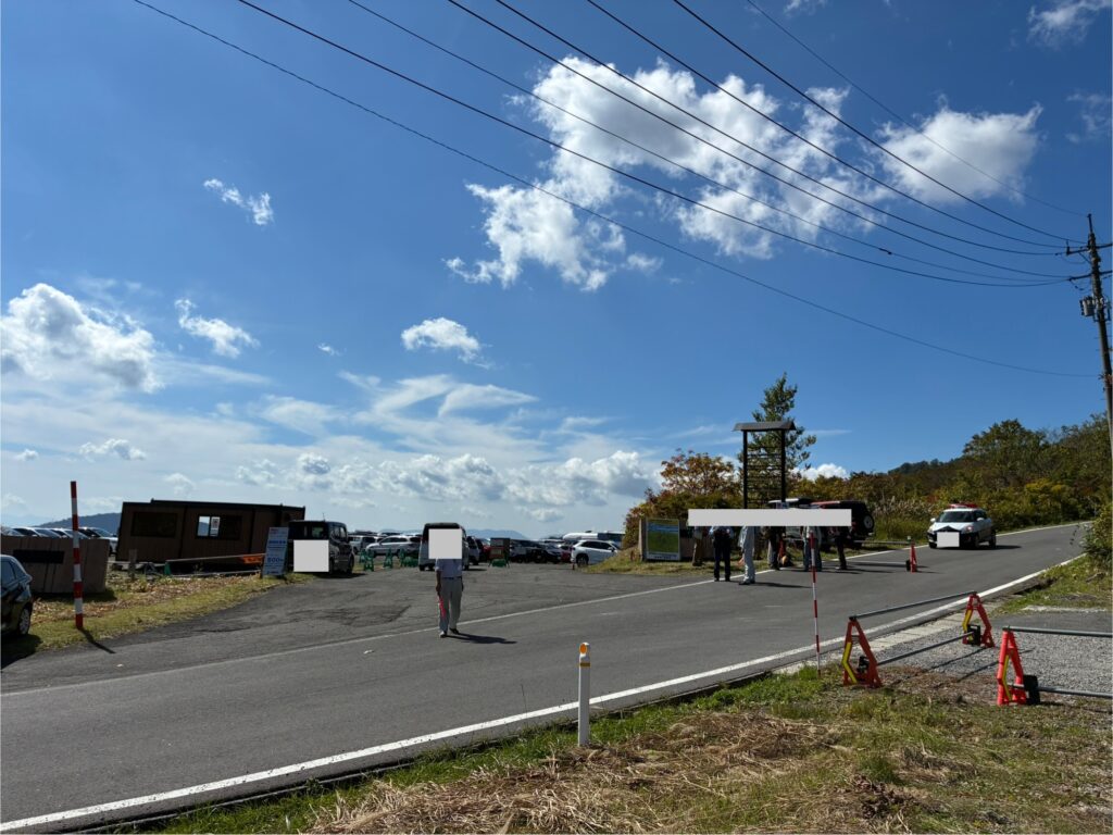 長時間登る山でもなく、予報も1日良かったため、昼頃山頂に着けば良いかなぐらいで11時頃に手前の臨時駐車場前を通ると…