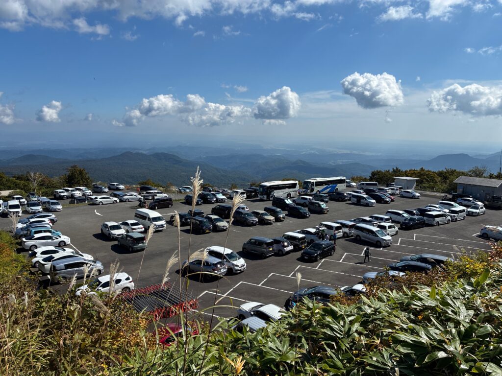どうやら上のいわかがみ平駐車場に大量の登山者、ツアーバスが押し寄せ、駐車場がパンクしてしまったようです。