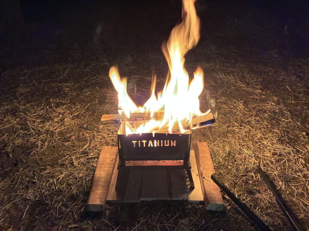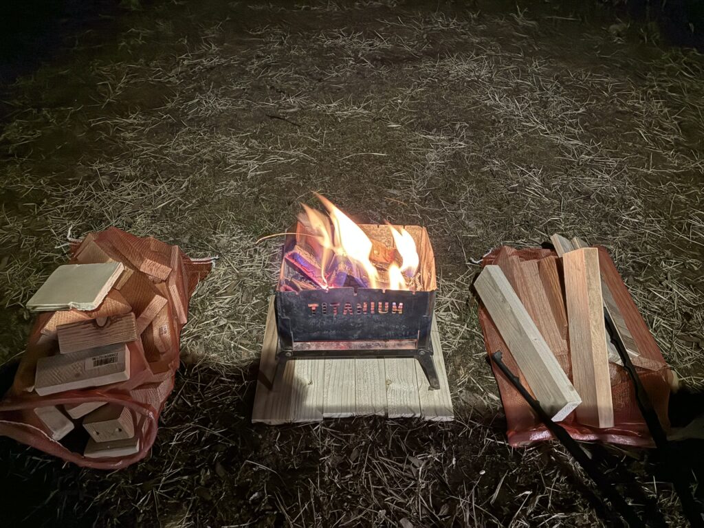 途中で使うのを辞め、薪バッグ内に残っていた小割薪に変更。やはりこれが現状のベスト薪!
