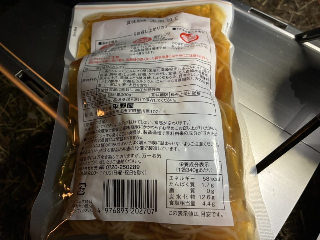 夜食にはヘルシーな味付こんにゃくを湯煎。