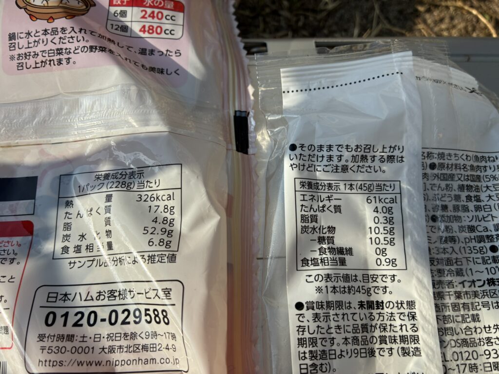 餃子は炭水化物が多く、ちくわと合わせると主食無しでも一食分の炭水化物量になるのがある意味便利です。