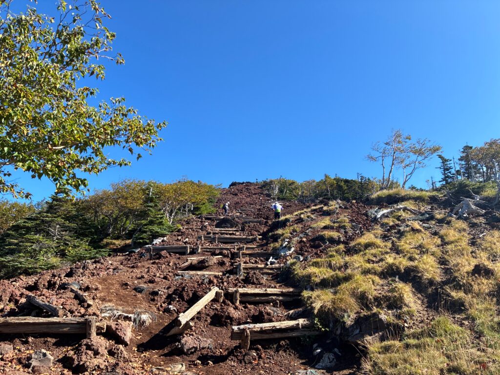 距離は増えますが勾配が緩くて歩きやすく、逆にありがたいかもしれません。