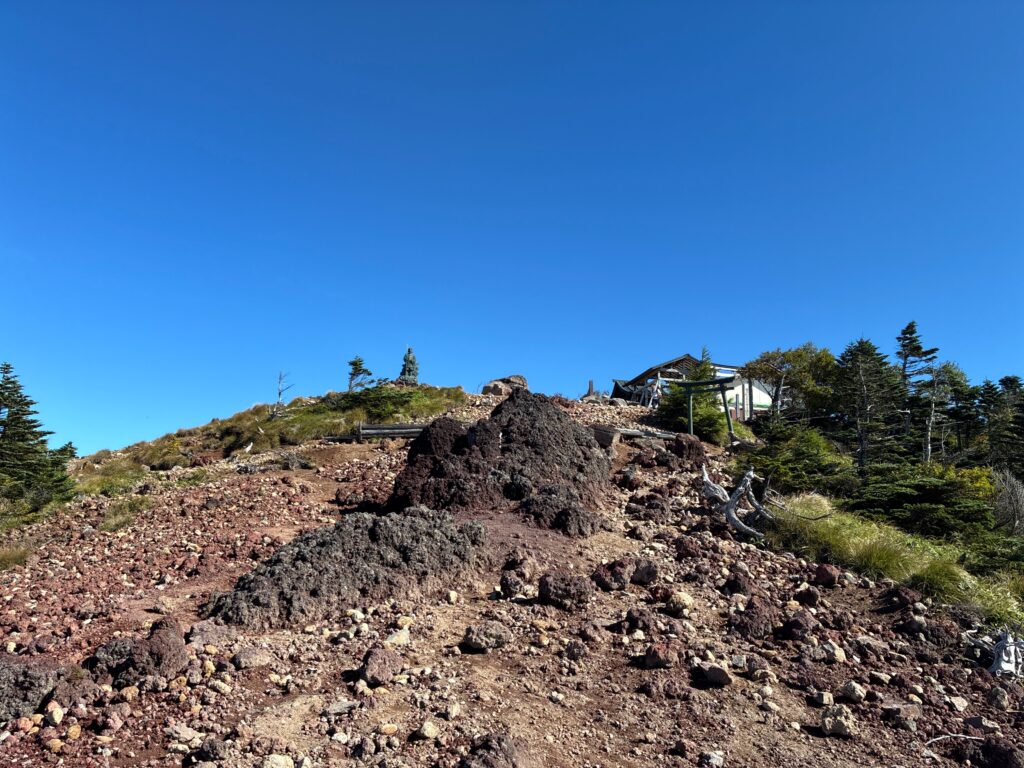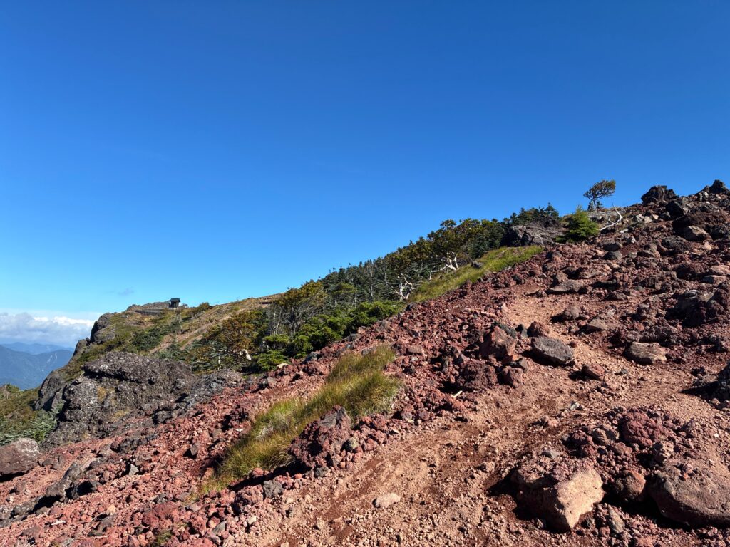 写真奥にある小屋のあたりが七合目のようです。