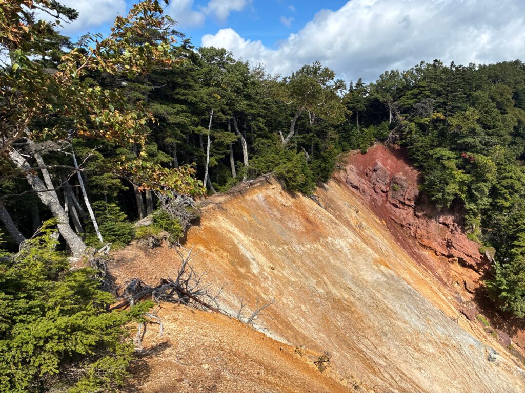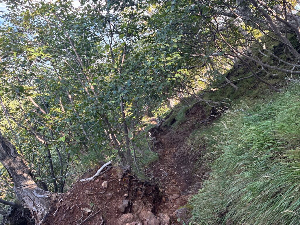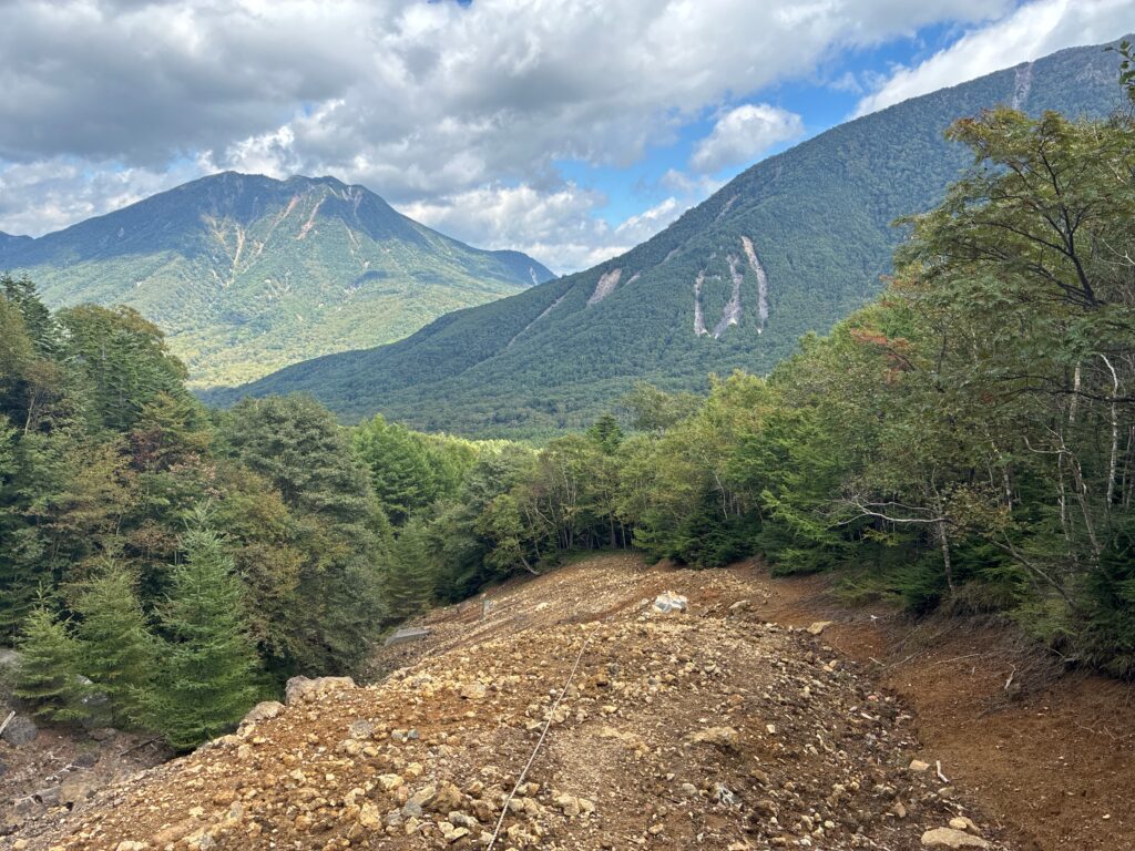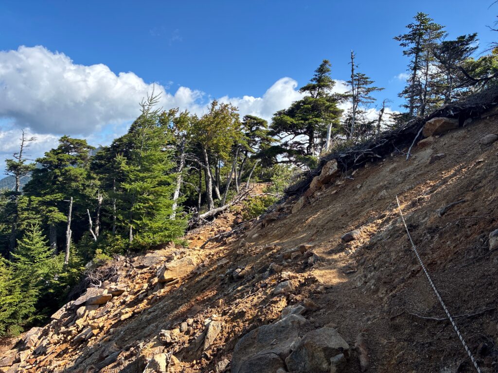 稜線の後はひたすら下りますが、途中崩れている箇所もいくつかあり。