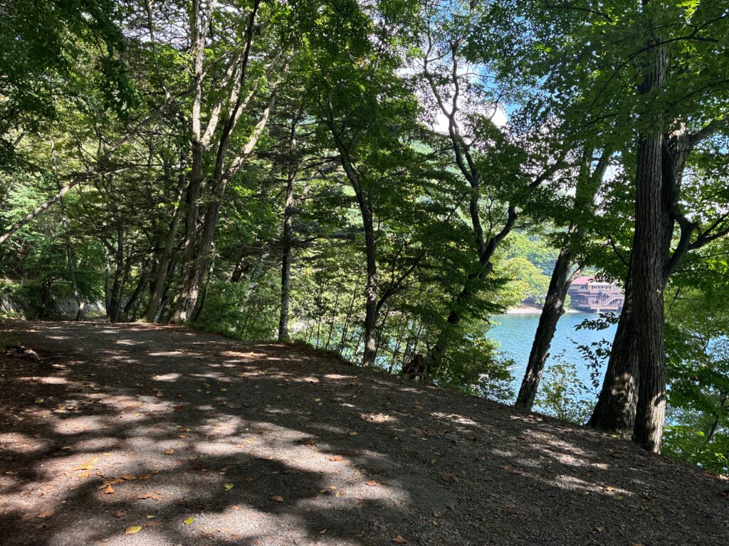 中禅寺湖のほとりからは遊歩道が整備されています。