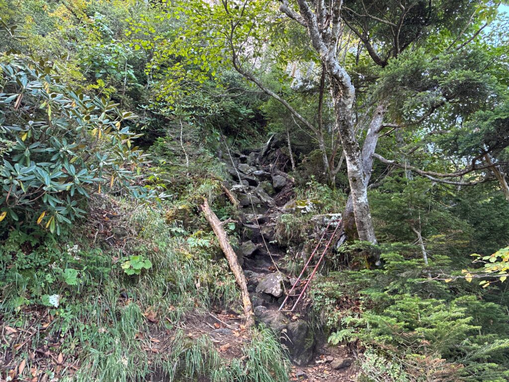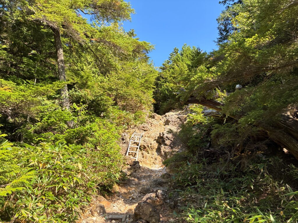 途中岩場の急登がありますが、ロープ、はしごが整備されています。
