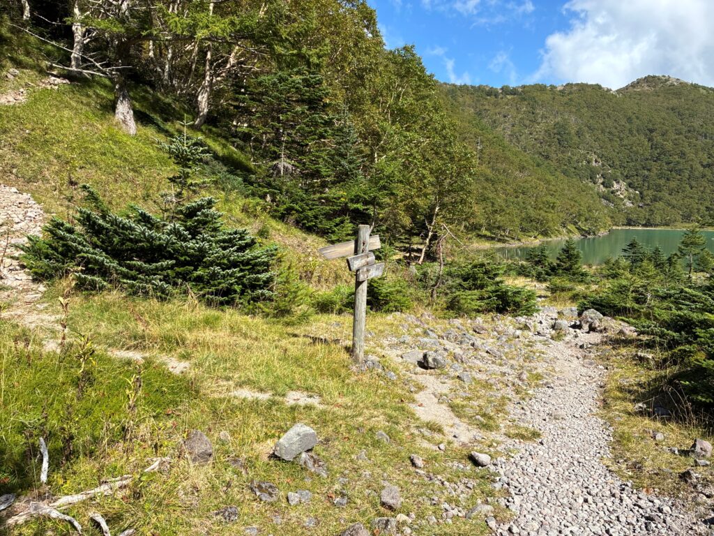 途中五色沼に下る右分岐もありますが、まずは日光白根山に進み、帰りにこちらから戻ってきます。
