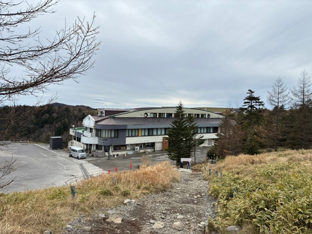 そこから遊歩道を進むと、右手奥に見えるのが美ヶ原高原ホテル山本小屋。