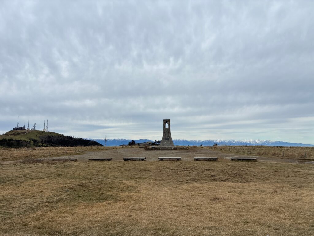 過去に濃霧による遭難が多発したことから建設された、霧鐘を備えた避難塔とのことです。